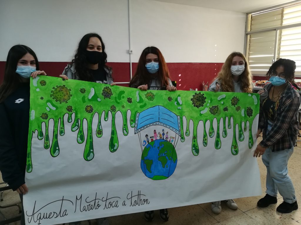 LEE MASUn grupo de alumnos de 3º de ESO han pintado unos murales para participar en el concurso “Pintem la marató”. Los murales quieren representar la situación de pandemia que estamos viviendo y dejar claro que este virus nos afecta a todos.